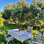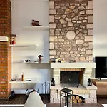 Von der Villa Tragos aus können Sie einen Ausblick auf den Garten genießen. Zur Ausstattung des Badezimmers gehören auch eine getrennte Toilette und eine Dusche. Es werden auch ein Haartrockner und Handtücher angeboten.